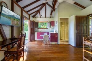 Bienvenue à la Caféière, un charmant bungalow de 35m² niché au Carbet, sur le pittoresque Chemin du canal des esclaves. Cette location saisonnière intimiste est idéalement conçue pour accueillir 2 voyageurs en quête d’authenticité et de tranquillité en Martinique. Situé dans la commune du Carbet, ce bungalow vous plonge au cœur de l’histoire martiniquaise. Le Carbet est réputé pour être l’un des plus anciens villages de l’île, là où Christophe Colomb aurait débarqué en 1502. La commune offre un cadre naturel exceptionnel entre mer des Caraïbes et forêt tropicale, avec ses célèbres Fonds Blancs et sa proximité avec la Montagne Pelée. La Caféière dispose d’une chambre confortable et d’une salle de bain, offrant ainsi tout le nécessaire pour un séjour réussi à deux. Son emplacement sur le Chemin du canal des esclaves témoigne du riche patrimoine historique de la région, où les vestiges des anciennes habitations sucrières rappellent le passé agricole de l’île. Depuis Le Carbet, vous pourrez facilement explorer les trésors de la côte caraïbe : plages de sable noir volcanique, sentiers de randonnée dans la forêt humide, distilleries de rhum, et le célèbre Centre de Découverte des Sciences de la Terre. La commune est également le point de départ idéal pour découvrir Saint-Pierre, l’ancienne capitale culturelle de la Martinique. Niveau tarifaire, la Caféière propose des tarifs adaptés à toutes les saisons : 70€ par nuit en basse saison, 90€ en moyenne saison et 120€ en haute saison. Une politique d’annulation flexible permet un remboursement intégral jusqu’à 7 jours avant votre arrivée. Réservez dès maintenant votre séjour à la Caféière via Booking.com et vivez une expérience martiniquaise authentique dans un cadre historique unique.