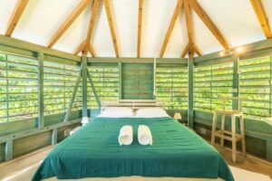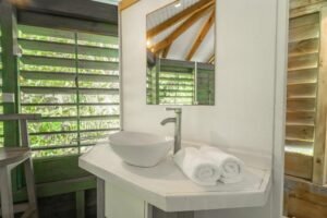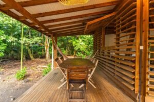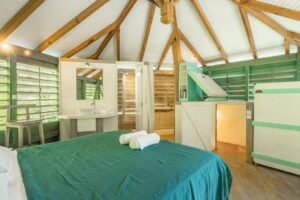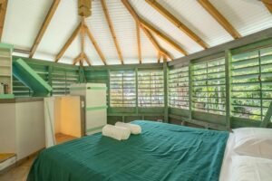 Bienvenue à Ixora, un bungalow authentique de 50m² niché au cœur du Domaine de Robinson, aux Anses-d’Arlet, l’une des communes les plus préservées et charmantes de Martinique. Ce logement confortable accueille jusqu’à 4 voyageurs et dispose de 2 chambres ainsi que 2 salles de bain, offrant intimité et praticité pour les couples ou les petites familles. Situé aux Anses-d’Arlet, vous serez au cœur d’un paradis tropical où authenticité rime avec beauté naturelle. Cette commune du sud-ouest de l’île est réputée pour ses plages de sable blanc bordées de cocotiers, ses eaux cristallines idéales pour la plongée et le snorkeling, et ses charmants villages de pêcheurs créoles. L’église au bord de l’eau, les cases colorées et l’ambiance paisible font des Anses-d’Arlet une destination de choix pour découvrir la Martinique authentique. À proximité, vous pourrez explorer les célèbres plages de Grande Anse et Petite Anse, vous initier à la plongée sous-marine pour admirer les tortues marines et les récifs coralliens, ou simplement savourer un ti-punch les pieds dans le sable en observant le coucher de soleil sur la mer des Caraïbes. Tarifs selon la saison : – Basse saison : 90€/nuit – Moyenne saison : 110€/nuit – Haute saison : 130€/nuit Conditions d’annulation flexibles : remboursement intégral jusqu’à 7 jours avant votre arrivée. Réservez dès maintenant votre séjour à Ixora et laissez-vous envoûter par la douceur de vivre martiniquaise aux Anses-d’Arlet !