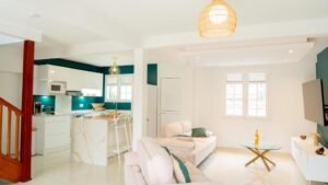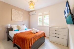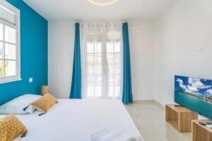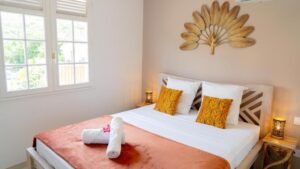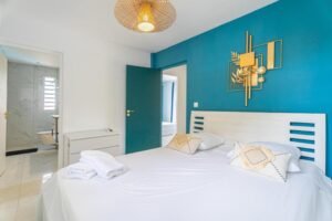 Bienvenue à la Rose Du Désert, une villa spacieuse de 135m² située à Sainte-Anne, l’une des destinations les plus prisées de la Martinique. Nichée dans le paisible lotissement les Oiseaux, cette propriété offre un cadre idéal pour accueillir jusqu’à 12 voyageurs dans ses 6 chambres confortables et 4 salles de bain. Sainte-Anne, véritable joyau du sud de la Martinique, vous séduira par ses plages de sable blanc immaculées, ses eaux turquoise cristallines et son ambiance authentiquement caribéenne. À proximité immédiate, vous découvrirez la célèbre plage des Salines, considérée comme l’une des plus belles plages de l’île, ainsi que de nombreuses criques préservées. Le bourg animé de Sainte-Anne propose un marché artisanal coloré, des restaurants créoles savoureux et toutes les commodités nécessaires à un séjour réussi. Cette villa est parfaitement adaptée aux groupes d’amis ou aux familles nombreuses souhaitant partager des moments de convivialité dans un espace généreux. La configuration avec 6 chambres et 4 salles de bain garantit confort et intimité à chacun. Réservez votre séjour à partir de 240€ par nuit en basse saison, 300€ en moyenne saison et 360€ en haute saison. Profitez d’une politique d’annulation flexible avec un remboursement intégral jusqu’à 14 jours avant votre arrivée. La Rose Du Désert est également disponible sur Booking.com et Airbnb pour votre plus grande facilité. Vivez l’expérience martiniquaise authentique dans ce havre de paix à Sainte-Anne, point de départ idéal pour explorer les merveilles du sud de l’île.