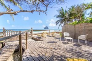 Bienvenue à Yellow Beach, une villa chaleureuse située au Diamant, l’une des communes les plus prisées de la côte sud-ouest de la Martinique. Nichée sur la Route de l’Anse Caffard, cette propriété accueille jusqu’à 9 voyageurs dans ses 3 chambres confortables, avec 2 salles de bain à disposition. Le Diamant vous séduira par son authenticité et sa situation exceptionnelle. Cette commune balnéaire offre un cadre de vie idéal pour des vacances ressourçantes, entre plages paradisiaques, panoramas spectaculaires sur le célèbre Rocher du Diamant, et ambiance créole authentique. Les amateurs de plongée, de randonnée et de gastronomie locale seront comblés par la richesse des activités environnantes. Yellow Beach constitue le point de départ idéal pour explorer les merveilles du sud de l’île : les plages sauvages, les sentiers de randonnée offrant des vues imprenables, les restaurants créoles, et les nombreux sites naturels préservés. Vous serez à proximité des commerces et services du bourg tout en profitant d’un environnement paisible. La villa propose des tarifs adaptés à toutes les saisons : 220€ par nuit en basse saison, 270€ en moyenne saison, et 320€ en haute saison. Pour votre tranquillité, bénéficiez d’une politique d’annulation flexible avec un remboursement intégral jusqu’à 14 jours avant votre arrivée. Disponible à la réservation sur Booking.com et Airbnb, Yellow Beach vous attend pour vivre une expérience martiniquaise inoubliable au cœur du Diamant.